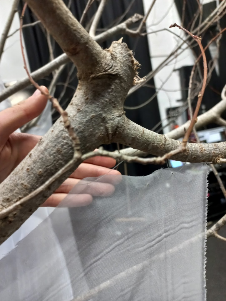 I then hung chiffon and sewed it to the tree’s branches with fishing wire.